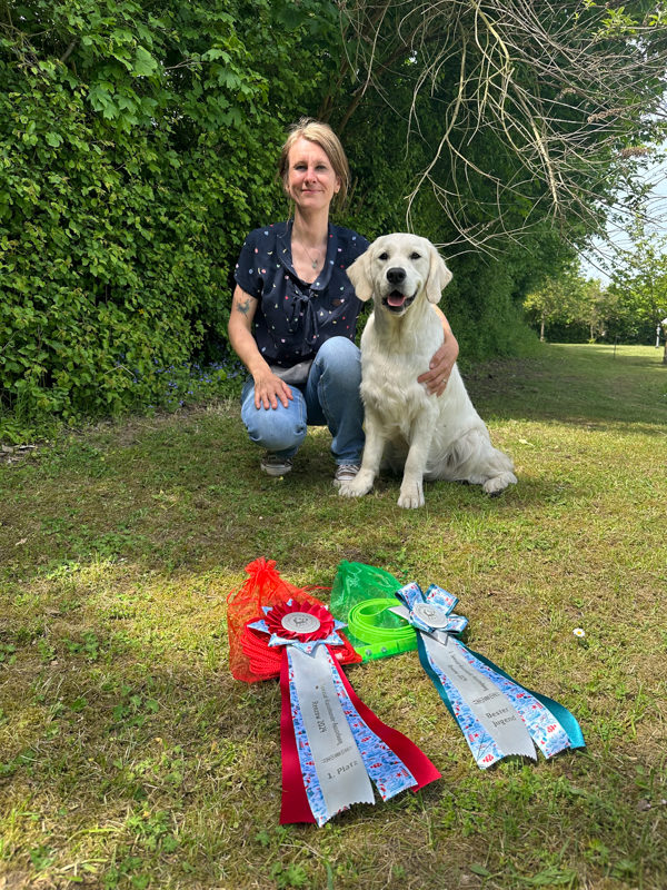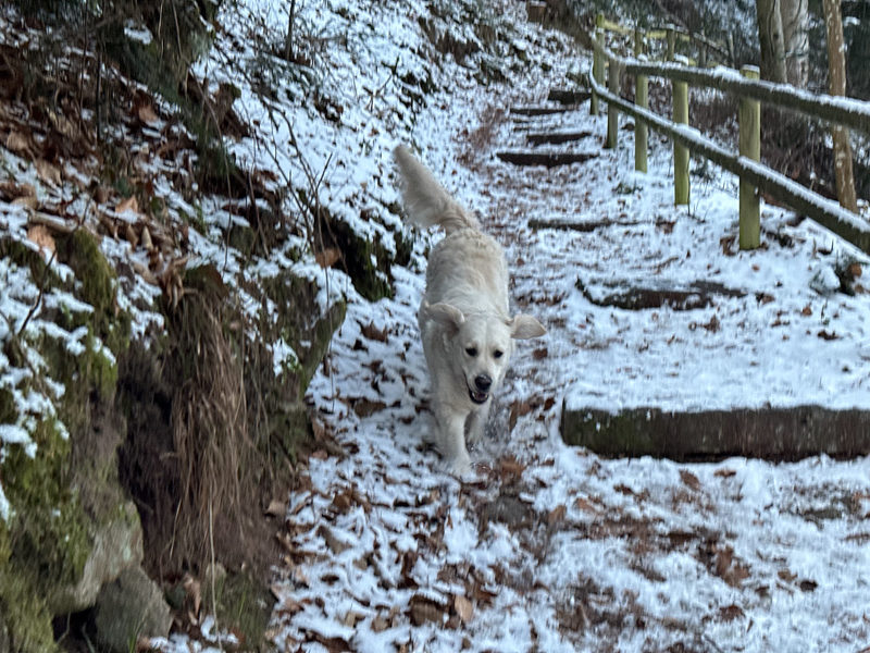 Ich höre meistens beim 3ten oder 4 ten Mal. Beim ersten, zweiten und dritten Mal ruft meine Mareike mich Abbey – danach Abigail. Sie macht dann immer so einen Quatschfug, dass ich auch ja komme. Ich sags Euch, die lässt sich Dinge einfallen, dass ich auch ja zu ihr komme. Ihr müsstet sie mal sehen, wenn sie morgens vor mir steht und ich Pipi mache! Zum Totlachen!!! Bin gespannt, was sie sich noch einfallen lässt. Gott sei Dank bin ich nicht alleine, sonst würde sie mich nur nerven.